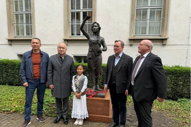 Açılış törenine; Thüringen Belediye Başkanı Bodo Ramelov, Erfurt Ticaret ve Sanayi Odası Başkanı Dieter Bauhaus, öğrenciler ve Thüringen'deki Kırgız diasporasının temsilcileri katıldı. Ünlü Kırgız heykeltıraş Tamila Mamatova tarafından yapılan "Kırgız kızı" heykeli, geçmişin mirasını taşımayı ve parlak bir gelecek arzusunu uyandırmayı amaçlıyor.