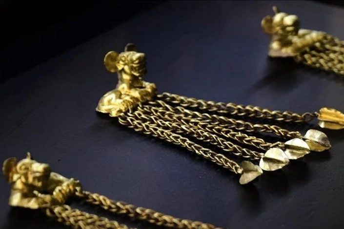 Prof. Dr. Zeynulla Samaşev’in (Prof. Dr. Zainolla Samashev) liderliğindeki kazı çalışmalarında, Sakalar döneminde yaşamış zanaatkarlar tarafından yapılan bu göz alıcı altın eserler, tasarımları ve inci işlemeleriyle büyülüyor. Samaşev, sergideki eserlerin en eskisinin 3 bin, en yenisinin ise 1 bin yıl öncesine ait olduğunu vurgulayarak, "Bu eserler, altın üretimi ve işçiliğinin bu topraklarda zirveye ulaştığını gösteriyor." dedi.