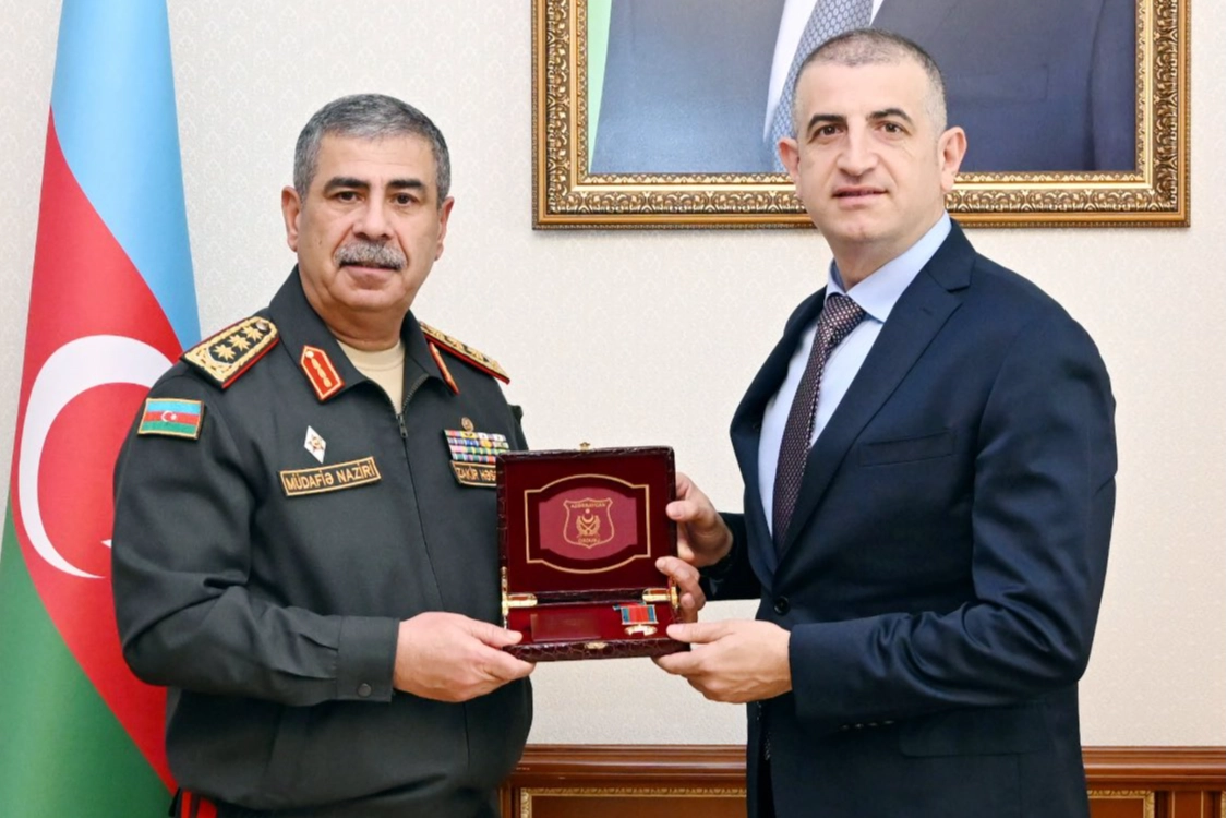 Görüşmenin ardından Savunma Bakanı Hasanov, BAYKAR Teknoloji Genel Müdürü Bayraktar'a "Askerî İş Birliği Alanında Hizmetler" madalyasını takdim etti.
