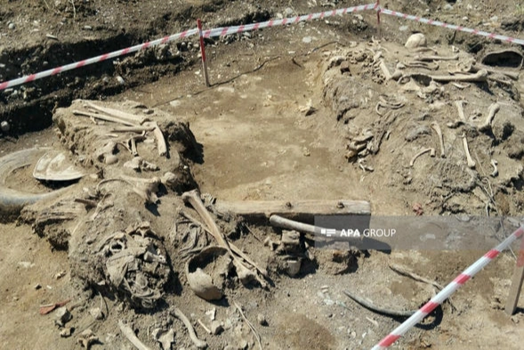 Azerbaycan 8 Kasım 2020'de işgalden kurtardığı Ağdam kentinde Ermenistan'ın bıraktığı mayınları temizleme çalışmalarına devam ediyor. Azerbaycan Basın Ajansının (APA) Karabağ bürosu çalışanları, Ağdam'da mayın temizleme esnasında toplu mezar bulunduğunu basına yansıttı.