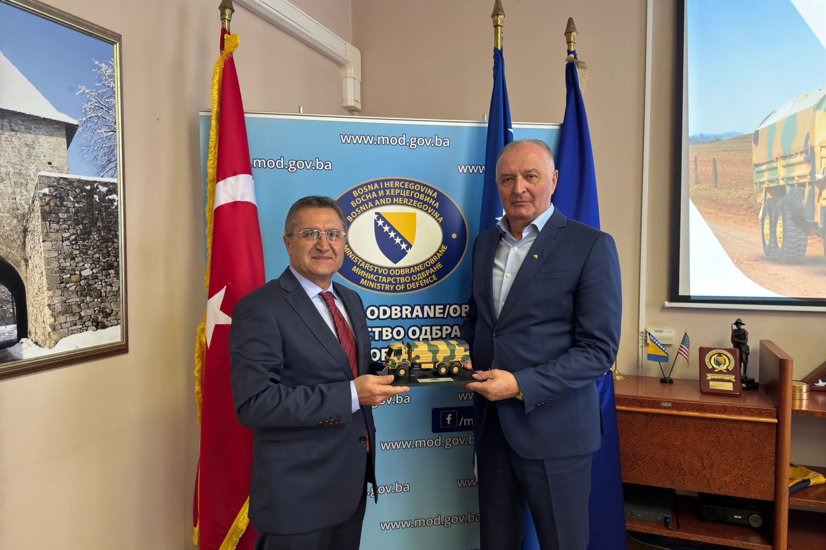 Bosna Hersek Savunma Bakanı Zukan Helez ile Türkiye'den Bosna Hersek'e giden BMC Otomotiv Sanayi ve Ticaret A.Ş. yetkilileriyle bir toplantı gerçekleştirdi. Toplantıya ilişkin detaylar, Bosna Hersek Savunma Bakanlığı tarafından açıklandı.