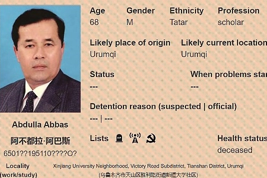 Xinjiang Üniversitesinde Tataristan Bilimler Akademisi'nin yabancı bir üyesi, 9 kitap ve 100'ün üzerinde akademik makale kaleme almış bir aydın, Tatar asıllı bilim insanı Prof. Dr. Abdulla Abbas'ın, ayrıca Çin Komünist Partisi Üyesi olduğu biliniyor.