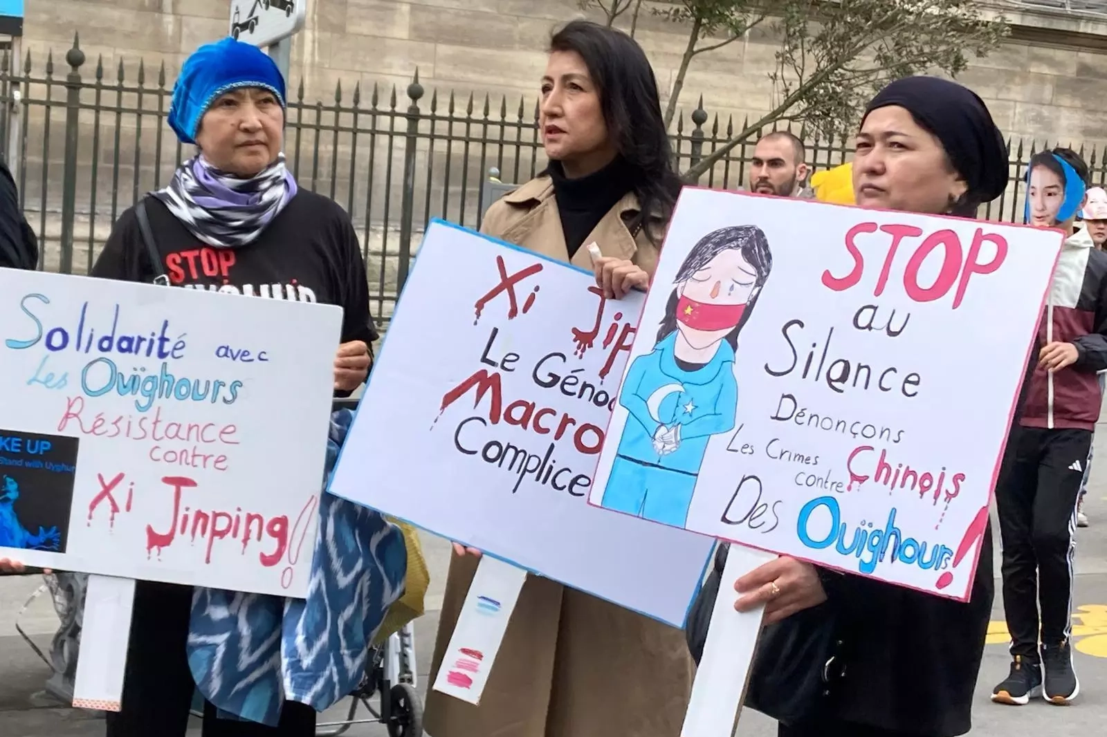 Şi Cinping 5 yıl aradan sonra Avrupa'da yeni arayış için Fransa, Sırbistan ve Macaristan'a ziyaret gerçekleştiriyor. Bunun üzerine Doğu Türkistanlılar ve Tibetliler, Paris'teki Place de la Madeleine'de ırk ayrımcılığı, İslam karşıtlığı, sömürgecilik, tecavüz ve kitlesel kısırlaştırma, çevresel yıkım, ırk, din, kültür ve ekonomik soykırım politikarı ve toplama kampları gibi konularda Çin rejimini kınayan posterlerle bir protesto düzenledi.