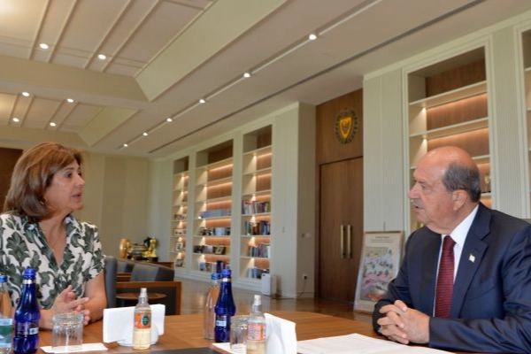 Kuzey Kıbrıs Türk Cumhuriyeti (KKTC) Cumhurbaşkanı Ersin Tatar, 7 Temmuz 2025 tarihinde Lefkoşa’daki KKTC Cumhurbaşkanlığı Yerleşkesi'nde Birleşmiş Milletler (BM) Genel Sekreteri Antonio Guterrres’in Kıbrıs Şahsi Temsilcisi Maria Angela Holguin Cuellar ile görüştü.