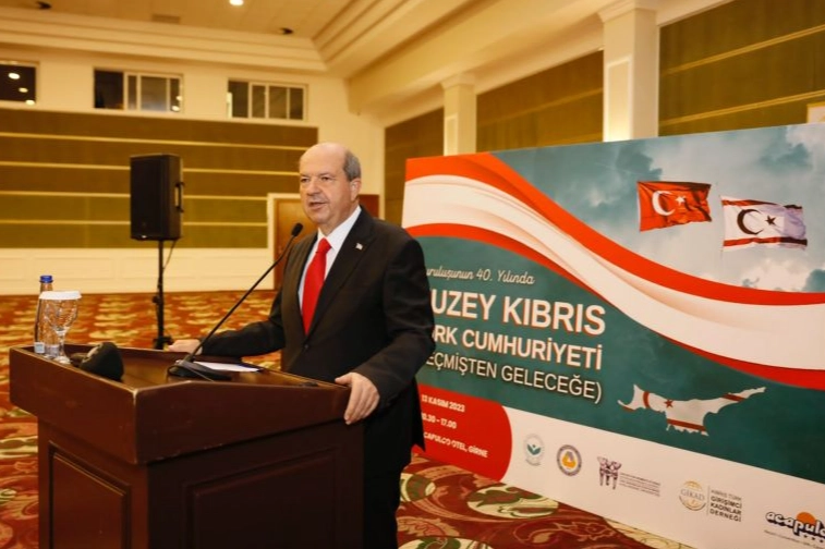 Cumhurbaşkanı Ersin Tatar, Kadın Akademisyenler Derneği, Doğu Akdeniz Üniversitesi Kadın Araştırmaları ve Eğitim Merkezi ile Kıbrıs Türk Kadın Girişimciler Derneği’nin ortaklaşa düzenlediği “Kuruluşunun 40’ncı yılında Kuzey Kıbrıs Türk Cumhuriyeti: Geçmişten Geleceğe” adlı panelde konuştu.