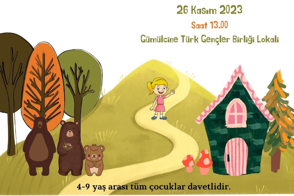Gümülcine Türk Gençler Birliği - Çocuk Saati Etkinliği "Sarı Saçlı Kız ve Üç Ayıcık Masalı", grup çalışmasıyla boyama etkinliğimize 4-9 yaş arası Çocuklarımızı bekliyoruz. pic.twitter.com/aplCIZXu6n