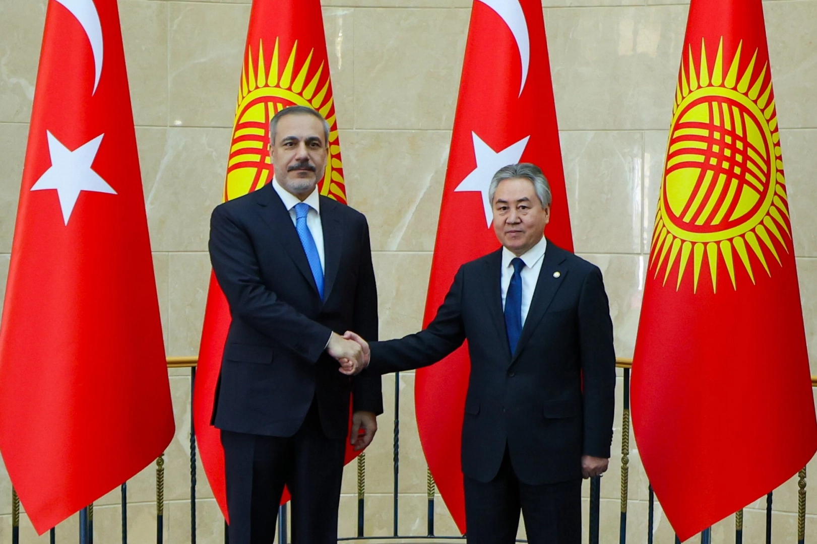 Kırgız Cumhuriyeti Dışişleri Bakanı Ceenbek Kulubayev'ın daveti üzerine Kırgızistan'da temaslarda bulunan Türkiye Cumhuriyeti Dışişleri Bakanı Hakan Fidan, başkent Bişkek’te Kulubayev ile bir araya geldi.