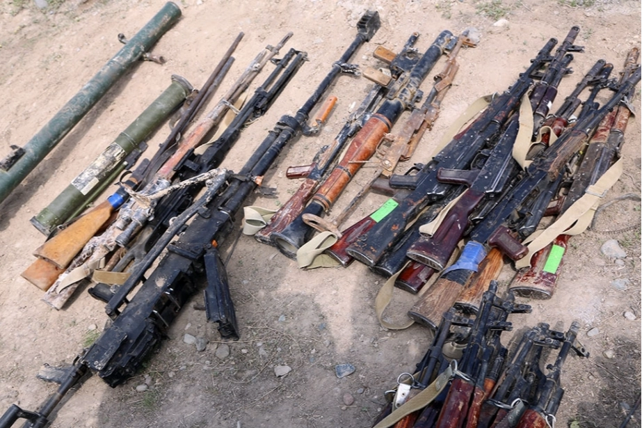Azerbaycan İçişleri Bakanlığı basın servisi, şehir bölgesinde 2 adet "AKS-74" ünitesi, 1 "AK-74M", 4 "AK-47", 1 "AK-103", 4 "AKMS", 5 AK-74 otomatik silah, 2 adet "TOZ" marka av tüfeği, 1 adet "APS" marka tabanca, 2 adet "Makarov" marka tabanca, 6 el bombası, 1 adet "PK" marka makineli tüfek, farklı kalibrelerde 2536 kartuş, 4 adet süngü-bıçak, 39 kartuşlu tarak ven30 tarak bulunduğunu açıkladı.