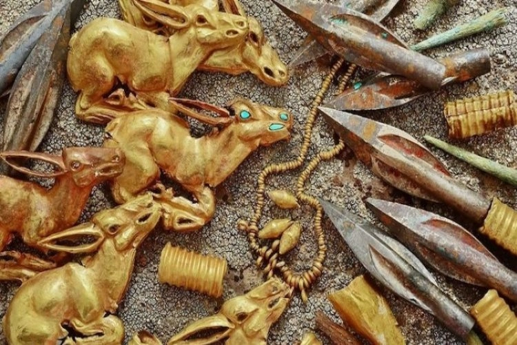Arkeofili adlı sitenin haberine göre arkeologlar uzak Tarbagatay dağlarındaki bir mezar höyüğünde, yaklaşık 3.000 altın ve değerli nesne ortaya çıkardı.