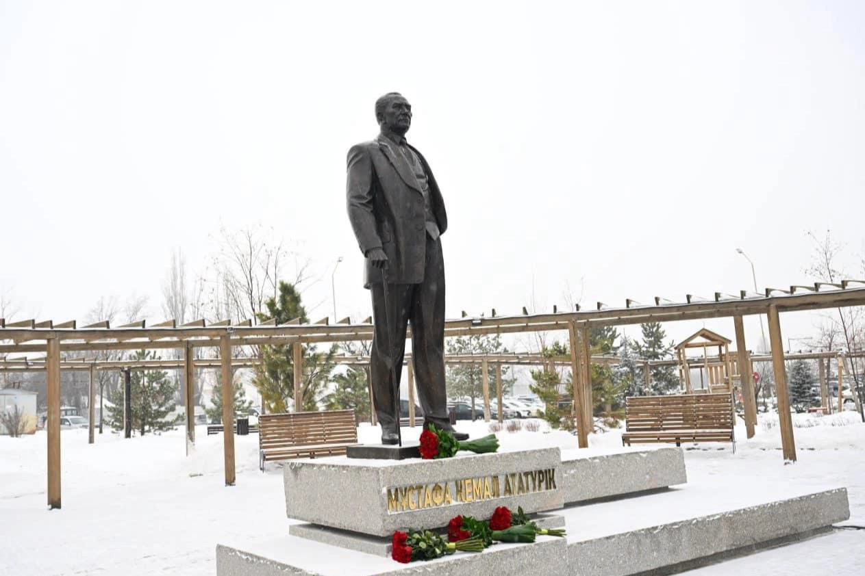 Açılışta konuşma yapan Bakan Balayeva, anıtın Kazakistan Cumhurbaşkanı Kasım Cömert Tokayev'in 100. yıl hatırası olarak Türkiye'nin ilk Cumhurbaşkanı Atatürk'ün heykelinin dikilmesi talimatıyla yapıldığını belirtti.
