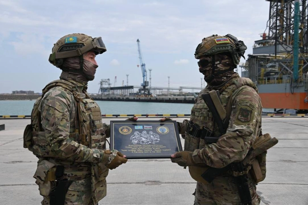 Hazar Denizi'nin Kazakistan kesiminde yapılan tatbikata, Kazakistan ve Azerbaycan'dan yaklaşık 300 asker katıldı.