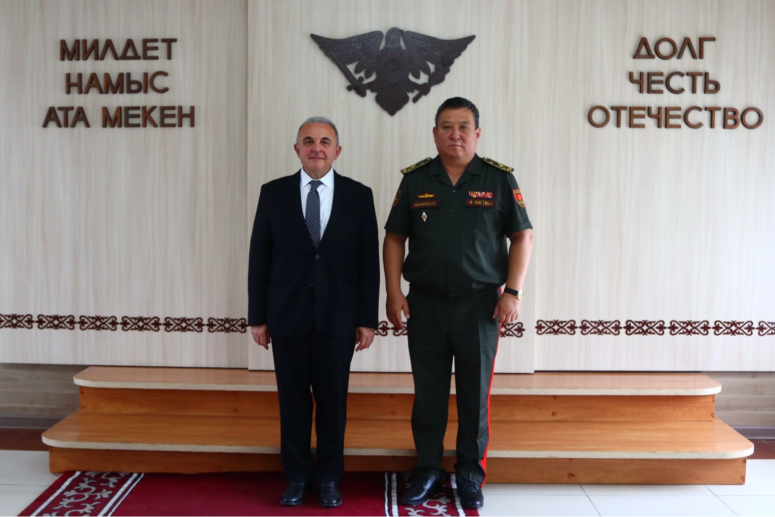Türkiye'nin Bişkek Büyükelçisi Mekin Mustafa Kemal Ökem, Kırgızistan Savunma Bakanı Ruslan Mukambetov'a nezaket ziyaretinde bulundu. Bakan Mukambetov, Büyükelçi Ökem'i yeni görevinden dolayı tebrik etti.