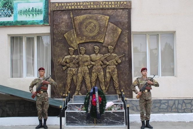 Kırgızistan ülkesi için savaşan ve bu uğurda canını veren askerlerinin anısını yaşatıyor. Bu kapsamda Kırgızistan İçişleri Bakanlığına bağlı iç güvenlik kuvvetlerinin askeri birliğinde 18 Eylül 2024 tarihinde, kahramanca şehit olan askerler onuruna ükenin Tacikistan sınırında anıt dikildi.