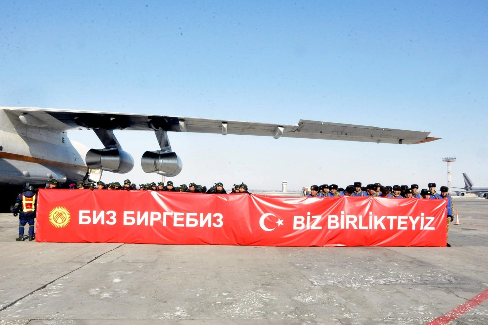 Kırgızistan Cumhurbaşkanı Sadır Caparov'un talimatı üzerine, Acil Durumlar Bakanlığına bağlı 100 kişilik arama kurtarma ekibi, insani yardım malzemeleri, 78 Kırgız çadırı, çadırları kuracak 3 uzman ve işçi önceki gün özel bir uçakla Kırgızistan'dan Türkiye'ye gönderildi.
