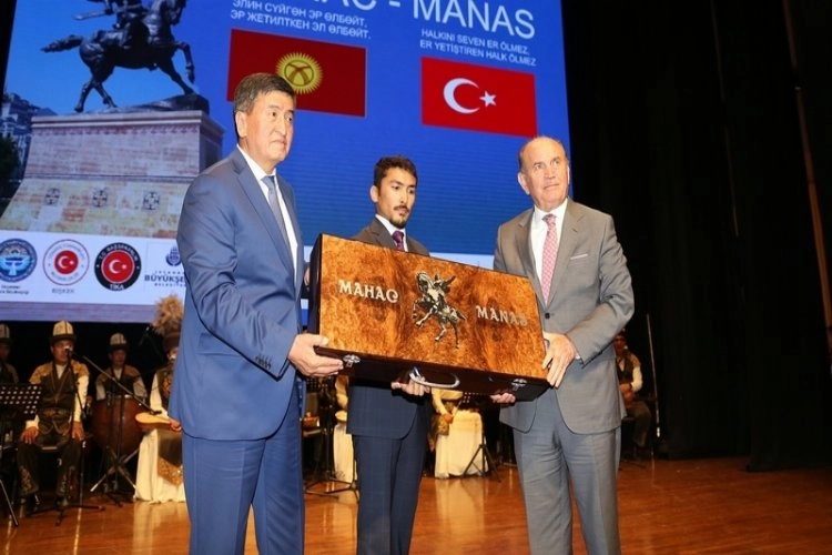 Konuşmaların ardından, Kırgız Başbakan Ceenbekov, kendisine ev sahipliği yapan Başkan Topbaş’a Türkçe’ye çevrilen Manas Destanı’nı anlatan kitabı hediye etti. Başbakan ayrıca, Cumhurbaşkanı Recep Tayyip Erdoğan’a takdim edilmesi için Manas Destanı’nın Türkçe dev nüshasını da Topbaş’a teslim etti. Emaneti teslim alan Topbaş, konuk başbakana, kitabı bu akşam İstanbul’a gelecek olan Cumhurbaşkanı Erdoğan’a elden vereceğini söyledi.