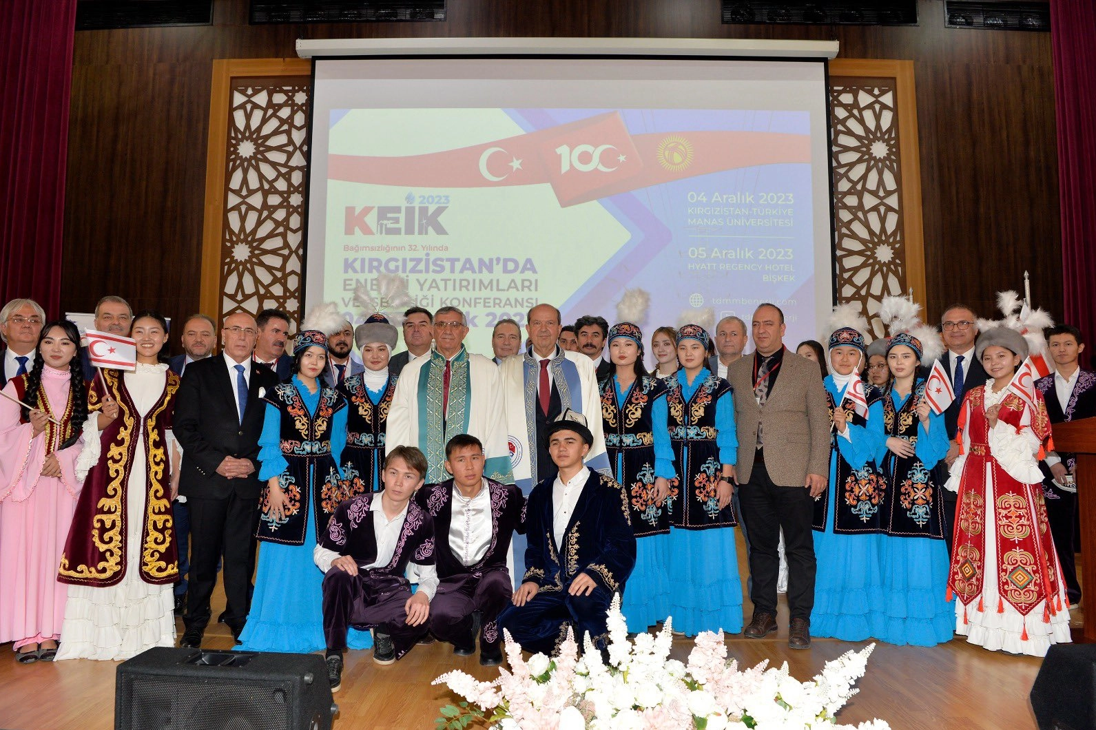 Kritik temeslarda bulunmak üzere Kırgızistan'a giden KKTC Cumhurbaşkanı Ersin Tatar'a 4 Aralık 2023 tarihinde, Kırgızistan-Türkiye Manas Üniversitesi (KTMÜ) tarafından düzenlenen törenle fahri doktora takdim edildi.