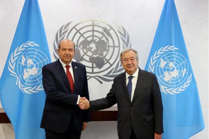 BM gözetiminde Güney Kıbrıs Rum Yönetimi (GKRY) ile Kuzey Kıbrıs Türk Cumhuriyeti (KKTC) arasında resmî müzakerelerin başlaması hususunda görüşmeler yapacağını ifade eden Cumhurbaşkanı Tatar, ülkesinin egemenliğinin ve toprak bütünlüğünün sağlanması şartını yineledi. Görüşmeyi KKTC tarafının Guterres'ten talep ettiğini dile getiren Tatar, "egemen eşit ve eşit uluslararası statü" maddesinden taviz vermeyeceklerinin altını çizdi.