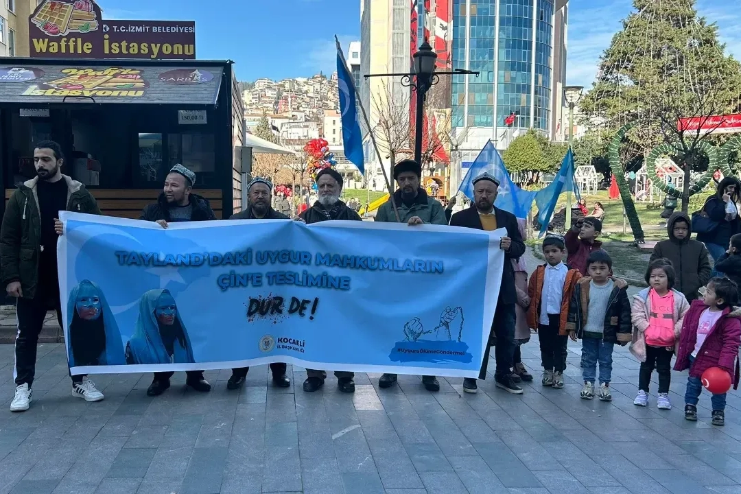 Kocaeli’deki Uygur Türkleri, Tayland’da gözaltında tutulan 48 Uygur Türkünün Çin’e iade edilmesi kararına tepki gösteren bir açıklama yaptı. Kocaeli’nin İzmit ilçesinde Sabri Yalım Parkı’nda toplanan Uygur Türkleri ve Devleti Aliye Ocakları üyeleri Tayland hükûmetinin aldığı bu kararı protesto etti. Katılımcılar, Tayland’ın bu adımını “tarihe zalimlerin ortağı olarak geçmesi” olarak nitelendirdi.