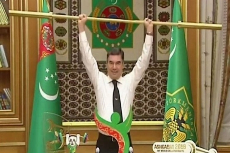 Türkmenistan Devlet Başkanı Gurbangulu Berdimuhamedov kabine toplantısı öncesinde altından yapılmış bir halter barını kaldırdı, bakanlar ise kendisini ayakta alkışladı.