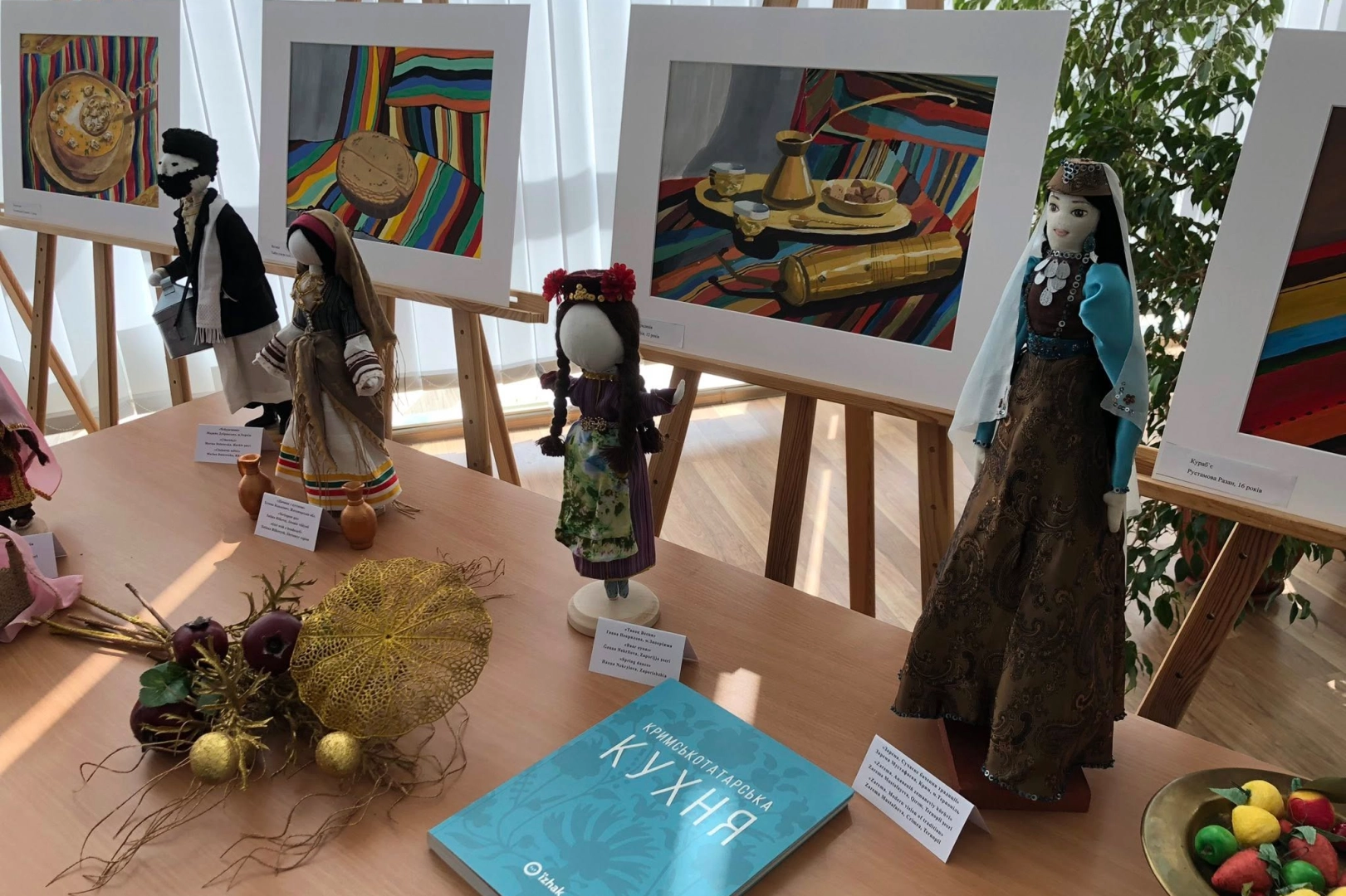 Sergi, Kırım Tatar gelenek ve ritüellerini yansıtan el yapımı kukla kompozisyonları, kütüphane arşivinden nadir ve yeni yayınlar, sanatçı Vitaliy Vlasyuk’un “Kırım Manzaraları” serisinden tablolar, ayrıca Ukraynalı, Kırım Tatarı ve Bulgar çocuk sanatçıların “Uygulamalı Sanatlar” ve “Kırım’ın Tatları” serilerinden eserleri bir araya getiririyor. Ayrıca Taras Şevçenko Milli Üniversitesi Türkoloji Bölümü’ne bağlı Kırım Tatar Dili ve Edebiyatı Merkezi arşivinden yayınlar da sergide yer alıyor.