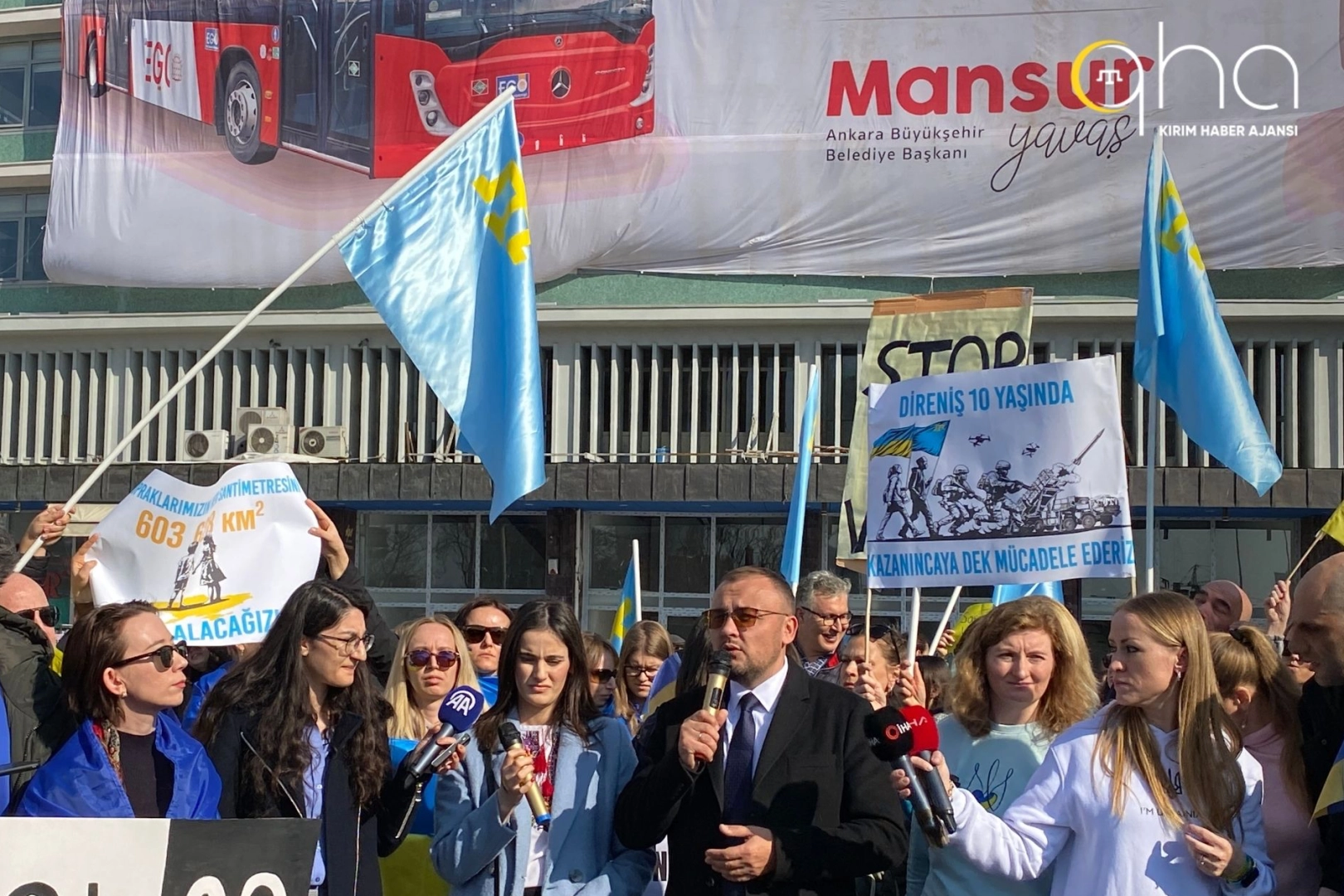 Basın açıklaması Ankara Ukrayna Derneği Başkanı Dr. Öğretim Üyesi Yuliya Biletska, Kırım Türkleri Kültür ve Yardımlaşma Derneği Genel Başkanı Mükremin Şahin ve Ukrayna'nın Ankara Büyükelçiliği Vasıl Bodnar tarafından gerçekleştirildi.