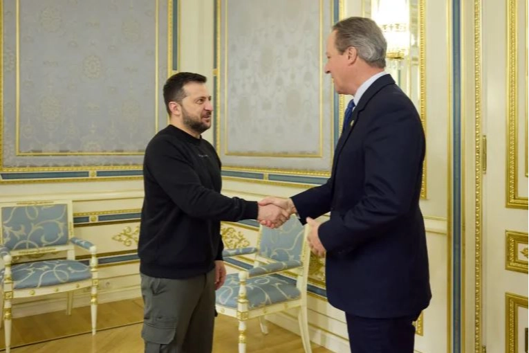 Dışişleri Bakanı Cameron, Ukrayna Cumhurbaşkanı Volodımır Zelenskıy ile bir araya geldi. Cameron, görüşmede ülkesinin Ukrayna'ya yönelik desteğine devam edeceğini vurgularken, savaşın ne kadar sürerse o kadar askeri destek sağlanacağının da altını çizerek, "Savaş ne kadar sürerse Londra o kadar desteğe devam edecek" dedi. Ayrıca Bakan Cameron, "İlk ziyaretimin Ukrayna'ya olmasını istedim. Ukrayna halkının gücüne ve kararlılığına hayranım" dedi.