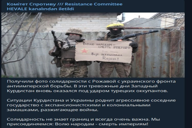 Ukrayna’nın Ankara Büyükelçisi Vasıl Bodnar, bir süredir sosyal medyada "Türk saldırılarına karşı Suriye'nin Kuzeyi ile (Rojava) dayanışma" başlığı altında yer alan sözde iki Ukraynalı askerin fotoğrafının perde arkasında Rus propagandası olduğunu açıkladı.