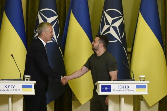 Ukrayna Cumhurbaşkanı Volodımır Zelenskıy ve NATO Genel Sekreteri Jens Stoltenberg yaptıkları görüşmeden sonra ortak basın toplantısı düzenledi. Basın toplantısında konuşan Zelenskıy, “NATO Genel Sekreterini Ukrayna’da ağırlamaktan büyük mutluluk duyuyorum, anlamlı bir sohbet gerçekleştirdiğimiz için mutluyum. Artık bu fiili müttefikler görüşmesi, ve Ukrayna’nın İttifak'ın de jure üyesi olması sadece zaman meselesidir. Bu anı yaklaştırmak için elimizden gelen her şeyi yapıyoruz. Ukrayna halihazırda tüm NATO üyelerini birleştiren ortak özgürlük alanını savunmaktadır ve Rusya'nın başlattığı bu asılsız ve cani savaşta Ukrayna'nın zaferi, hem ülkemizin hem de tüm kıtanın uzun vadeli güvenlik ve barışını garanti altına alacaktır." ifadelerini kullandı.
