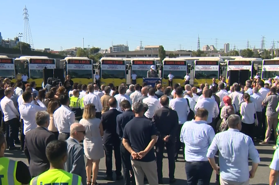 Odessa’ya gönderilmek üzere tüm bakımları yapılan 10 otobüs, İBB Başkanı Ekrem İmamoğlu ve Ukrayna'nın İstanbul Başkonsolosu Roman Nedılskıy katıldığı törenle Ukrayna’ya uğurlandı.