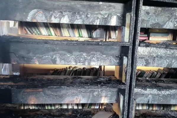İşgalci Rusların 30 Ekim 2023 tarihindeki bombardımanı sonucunda Oles Gonçar Herson Bölge Bilim Kütüphanesi'nin dördüncü katı neredeyse tamamen yanıp küle döndü.
