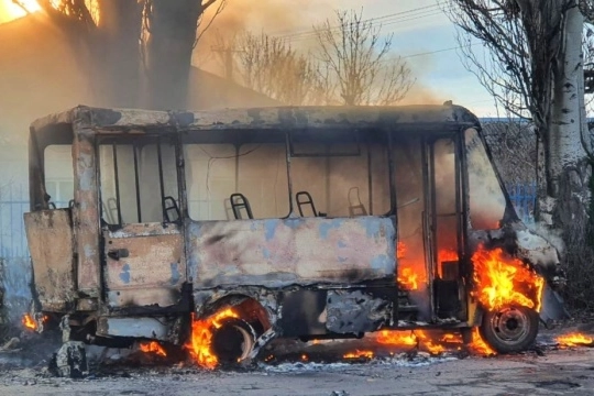 Bununla birlikte işgalciler, Herson’daki bir minibüse FPV dron ile patlayıcı attı. Saldırı sonucunda alev alan minibüsteki 2’si çocuk 5 yolcu yaralandı.