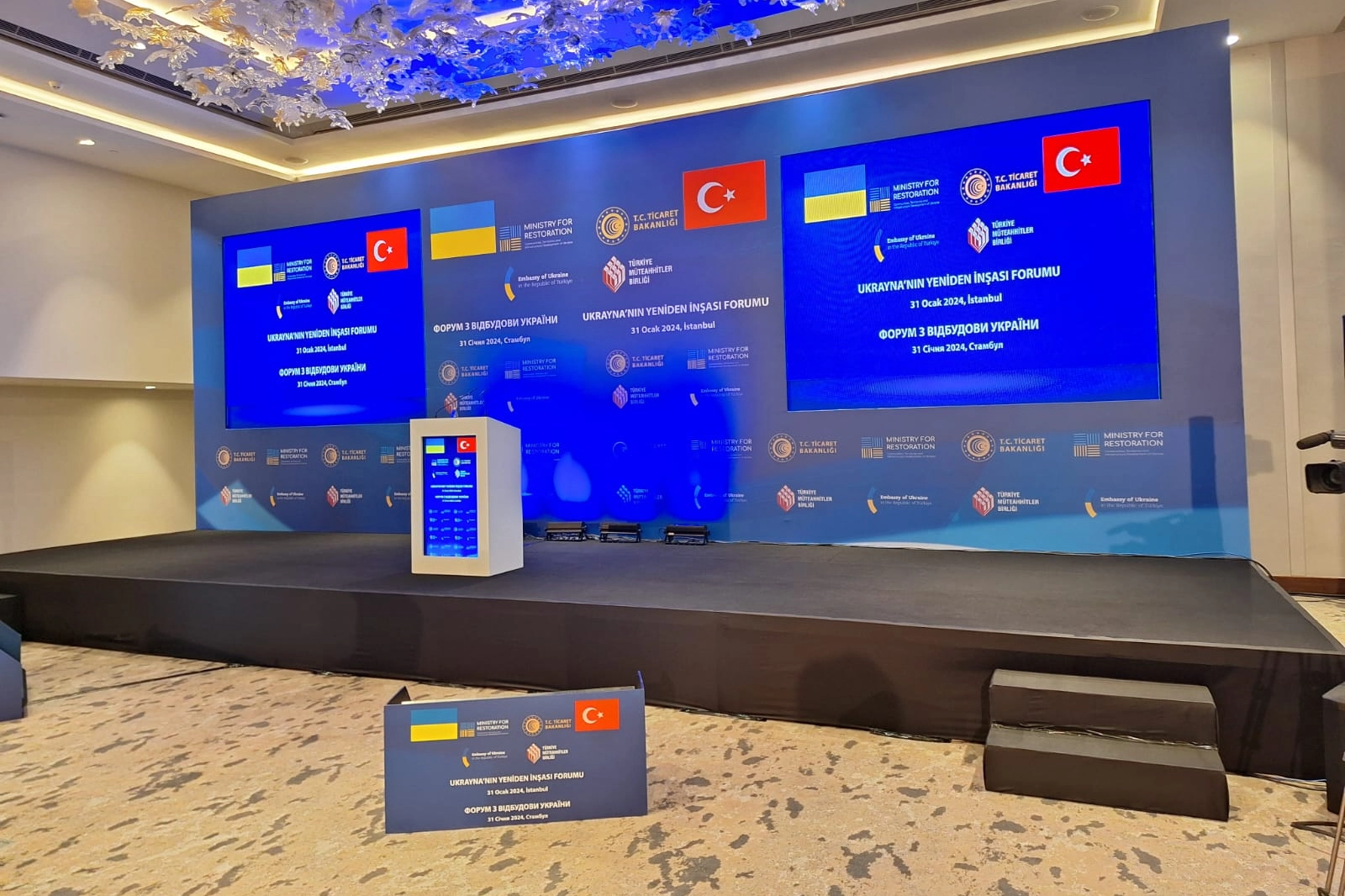 Ukrayna'nın Yeniden İnşası Forumu, 31 Ocak 2024 tarihinde İstanbul'da gerçekleştirildi. Ukrayna'nın altyapısının ele alındığı söz konusu forum, Türkiye Cumhuriyeti Ticaret Bakanı Ömer Bolat, Altyapı Bakanı Abdulkadir Uraloğlu ve Ukrayna Başbakan Yardımcısı ve Altyapı ve Bölgesel Kalkınma Bakanı Oleksandr Kubrakov'un yanı sıra Ukrayna'nın Ankara Büyükelçisi Vasıl Bodnar, Türkiye Müteahhitler Birliği (TMB) Başkanı Erdal Eren ve iki ülkeden çok sayıda temsilcinin katılımıyla gerçekleşti.