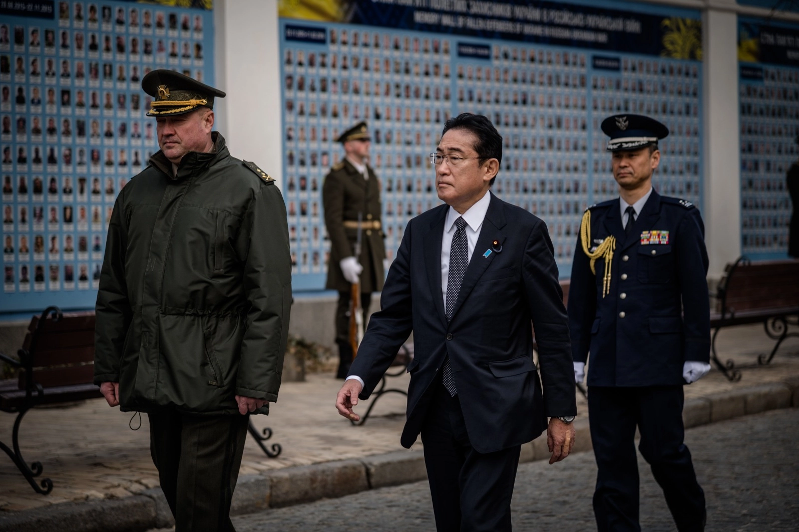 Geçen sene Rus işgali altında kalan Buça kentine giden Kişida, Rus işgalcilerin burada imza attığı katliamlar ile işlediği savaş suçları hakkında Ukraynalı yetkililerden bilgi aldı. Başbakan Kişida, Ukrayna'da Rus saldırıları nedeniyle hayatını kaybeden vatandaşların olduğu fotoğraf anıtına çelenk bıraktı. Başbakan, ardından saygı duruşunda bulundu.