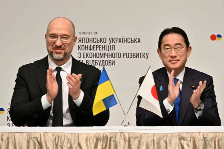 Japonya, Rus saldırıları nedeniyle Ukrayna genelinde zarar gören yapılar için harekete geçti. Ukrayna'nın yeniden inşasına destek veren Japonya, 19 Şubat 2024 tarihinde başkent Tokyo'da Ukraynalı yetkilileri ağırladı.