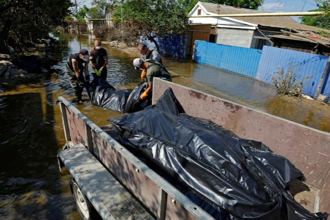 Reuters’in Rus işgali altında bulunan Gola Prıstan kentinde çekilen resimleri yayımladı. Kahovka Barajı’nın patlatılması sonucu su altında kalan kentte çekilen resimlerde işgalcilerin sokak ve evlerden boğulan insanların cansız bedenlerini topladığı görülüyor.