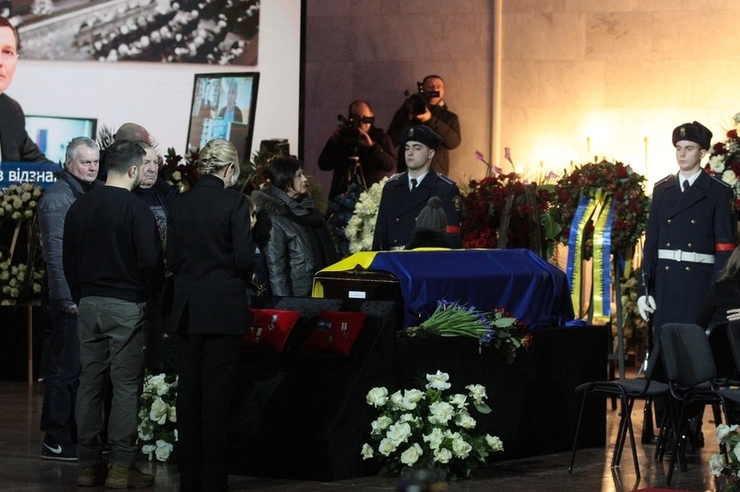 Ukrayna’nın başkenti Kıyiv’de düzenlenen cenaze törenine Ukrayna Cumhurbaşkanı Volodımır Zelenskıy ve eşi Olena Zelenska ile birlikte çok sayıda kişi katıldı.