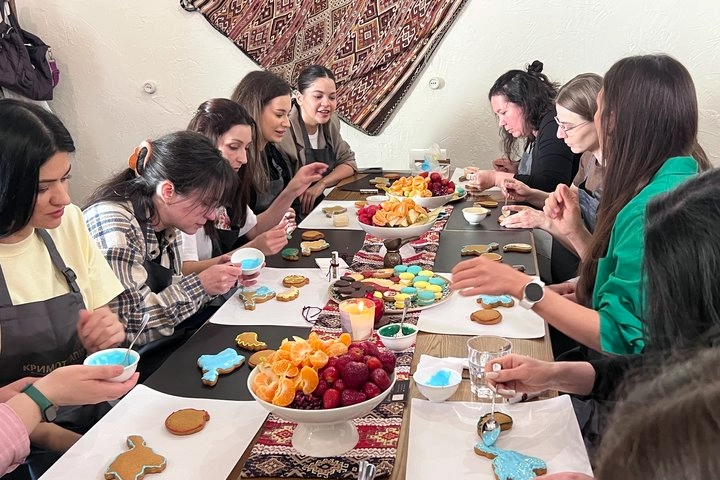 19 Nisan 2026’da gerçekleştirilen etkinlikte katılımcılar, Kırım şeklindeki kurabiyeleri boyayarak Kırım Tatar motiflerini ve memleket temalarını sanat eserlerine yansıttı.
