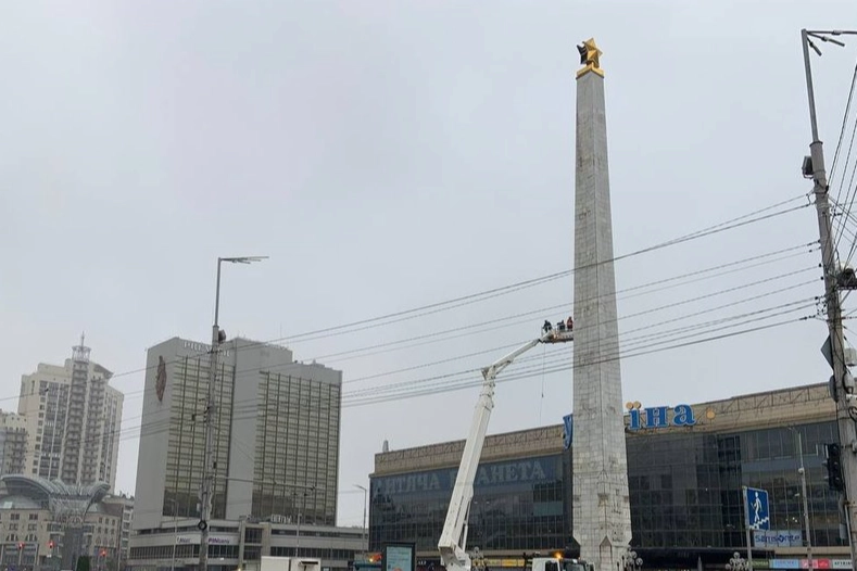 Ukraynalı gazeteci Andriy Tsapliyenko sosyal medyada ilgili resimleri paylaşarak; Kıyiv’in Galitska Meydanı'nda bulunan dikilitaştaki Sovyet yıldızı sökme işlemlerinin başladığını duyurdu.