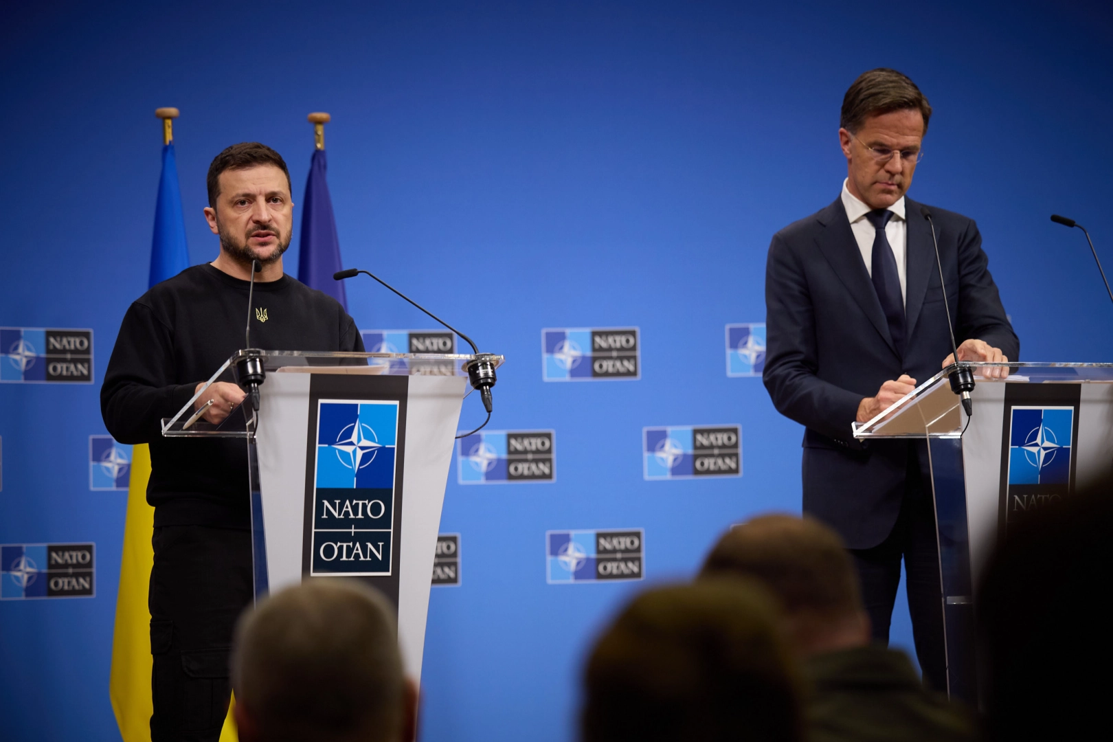 Zelenskıy, Rutte ile gerçekleştirdiği basın toplantısında yabancı basında çıkan "Ukrayna'nın nükleer silah geliştirme arzusu" hakkındaki iddialara da yanıt verdi. Zelenskıy iddialara karşı "Asla, nükleer silah geliştirme hazırlığı içerisinde olduğumuzu söylemedik. Budapeşte Memorandumu imzalandığında, burada Ukrayna'nın nükleer silahlarından vazgeçeceği ve Ukrayna'ya Rusya, Çin ve ABD'nin dahil olduğu ülkeler tarafından güvenlik, toprak bütünlüğü ve egemenlik garantileri verileceği yazılmıştı. Benim söylediğim şey buydu." açıklamasında bulundu.
