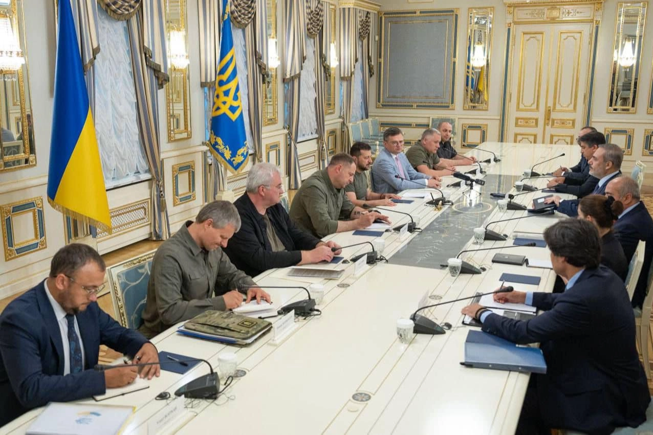 Türkiye Dışişleri Bakanı Hakan Fidan, Ukrayna'nın başkenti Kıyiv'de ilk önce Ukrayna Cumhurbaşkanı Volodımır Zelenskıy, Ukrayna Cumhurbaşkanlığı Ofisi Başkanı Andriy Yermak ve Ukrayna Başbakanı Denis Şmıgal ile bir araya geldi.