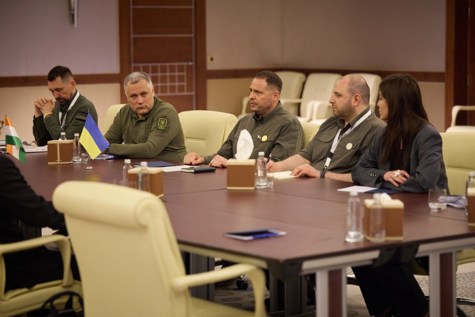 Ukrayna Cumhurbaşkanlığı Ofisi Başkanı Andriy Yermak başkanlığındaki Ukrayna heyetinde; Ukrayna Cumhurbaşkanlığı Ofisi Başkan Yardımcısı Andriy Sıbiga, Ukrayna Varlık Fonu Başkanı, Kırım Tatar Milli Kurultayı Delegesi Rüstem Umerov, Ukrayna'nın Arap ve Müslüman Devletlerle Etkileşiminden Sorumlu İstişare Kurulu Sekreteri Snaver Seythalil, Kırım Milli Varlık Vakfı Başkanı Lenur Mambetov ve Ukrayna Varlık Fonu Başkanı Danışmanı Mustafa Ametov ve Ukrayna devlet yetkilileri yer aldı.