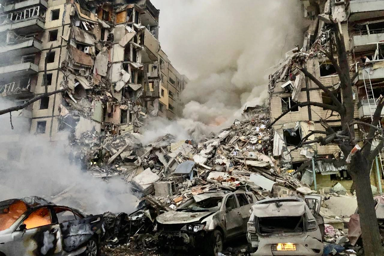 işgalci Rusya'nın düzenlediği saldırıda Ukrayna Dnipro'da çok katlı bir bina ağır hasar gördü. Çok sayıda insan enkaz altında kaldı. Saldırılar sonucu ikisi çocuk 10 kişinin yaralandığı öğrenildi.