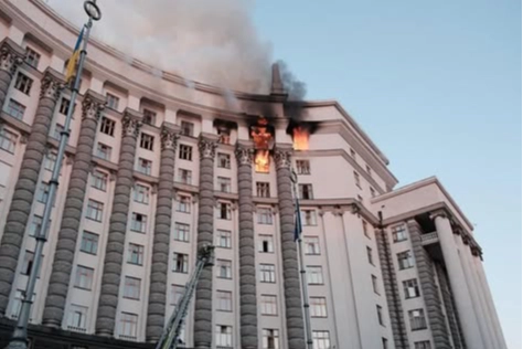 Ukrayna Başbakanı Yuliya Svırıdenko, hükûmet binasının ilk kez hedef alındığını, üst ve çatı katında yangın çıktığını bildirdi.