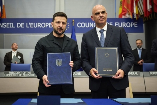 Ukrayna Cumhurbaşkanı Volodımır Zelenskıy ile Avrupa Konseyi Genel Sekreteri Alain Berset, 25 Haziran 2025 tarihinde Fransa'nın Strazburg kentindeki Avrupa Sarayı’nda, Rusya’nın Ukrayna’ya karşı işlediği saldırı suçunu yargılayacak Özel Uluslararası Mahkemenin kurulmasını öngören anlaşmayı imzaladı.