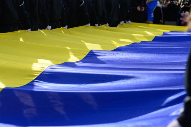 Ukrayna'nın Lviv kentinde Birlik Günü kutlamaları öncesinde Opera Binası çevresinde bir araya gelen çocuklar, 40 metrelik Ukrayna bayrağı açtılar. Ülkenin dört bir yanından toplanan asker ve çocuklar, Ukrayna'nın kayıtlar kitabına dahil edilen dev bayrak üzerine yüzlerce birlik mesajı yazarak gösteri düzenledi.