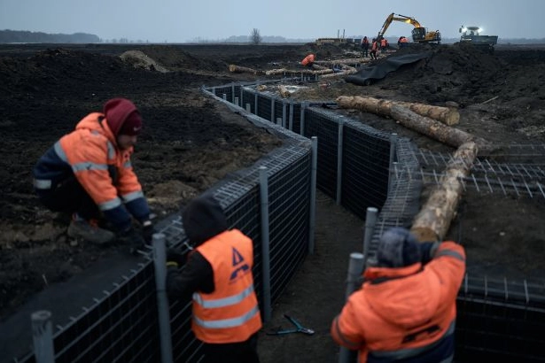 The Wall Street Journal'ın hazırladığı habere göre Ukrayna ordusu, şu anda önceliği tank savar hendekleri ve dikenli tel hatlarının hızla kurulmasına vermiş durumda. 300 kilometrelik savunma hattından sorumlu olan askerî mühendis Oleh, gazetecilere “Daha derin kazı yapan ordu, hayatta kalan ordudur.” diyor.