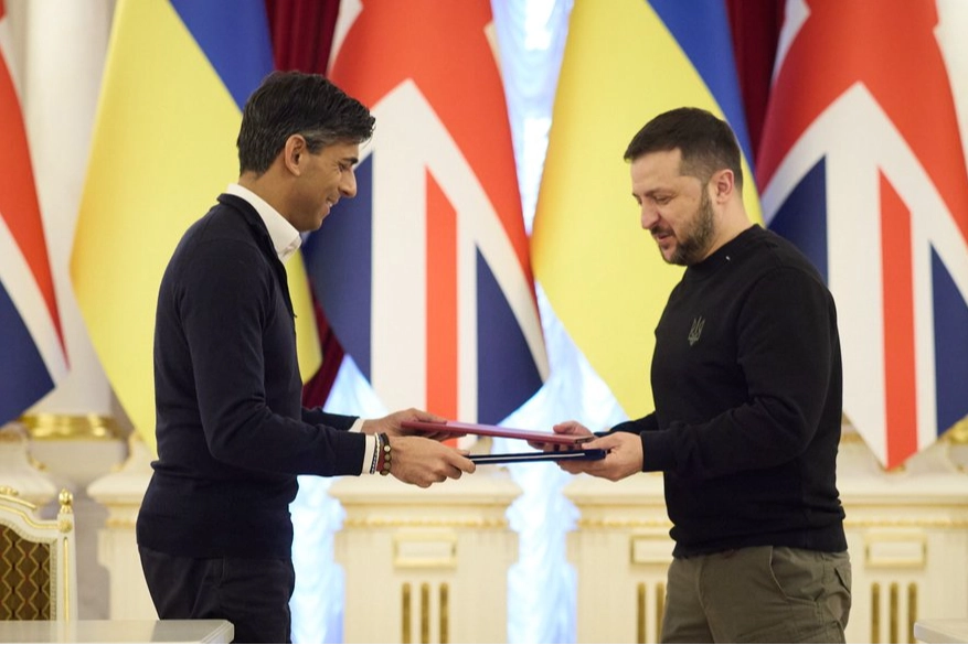 Birleşik Krallık Başbakanı Rishi Sunak, Rus saldırıları altındaki Ukrayna'ya desteğini bir kez daha göstermek için 12 Ocak 2024 tarihinde Kıyiv'i ziyaret etti. Ukrayna'ya savunma yardımları yapan Sunak hükûmeti, Ukrayna'ya desteğin 2.5 milyar streline çıkardığını duyurdu.