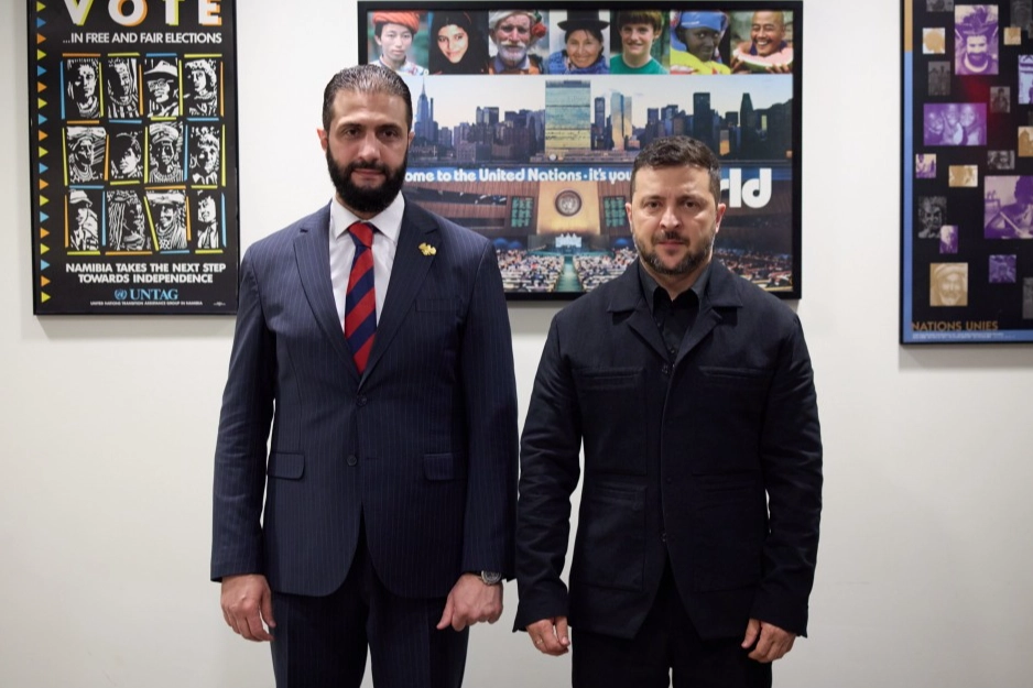 Ukrayna Cumhurbaşkanı Volodımır Zelenskıy (Volodimir Zelenski), 24 Eylül 2025 tarihinde New York’ta Suriye Cumhurbaşkanı Ahmed eş-Şara ile bir araya geldi. Cumhurbaşkanı Zelenskıy görüşmede, iki ülke arasındaki diplomatik ilişkilerin yeniden tesis edilmesine dair ortak bir bildiri imzalandığını açıkladı.