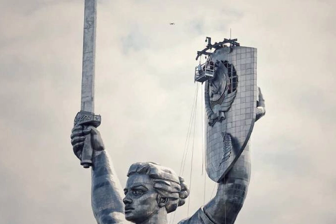 Ukrayna’nın başkenti Kıyiv’de bulunan Ana Vatan Anıtı’ndaki kadın figürünün kullanıldığı kalkandaki Sovyetler Birliği devlet ambleminin kaldırılmasına 30 Temmuz’da başlandı. Kalkanda bulunan SSCB arması, Ukrayna devlet arması olan "Üç Dişli Mızrak" ile değiştirilecek.
