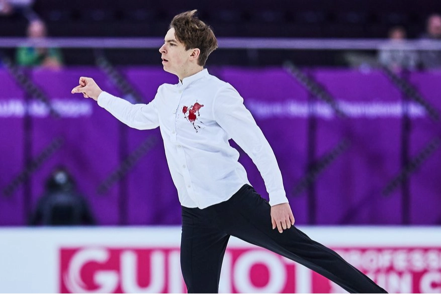Ukraynalı artistik patenci İvan Şmuratko, terörist devlet Rusya’nın yaklaşık 2 yıldır Ukrayna'ya yönelik düzenlediği saldırılarda ölen sivillere dikkat çekmek amacıyla, 2024 Avrupa Artistik Patinaj Şampiyonası'nda "kanlı” gömlekle buza çıktı.